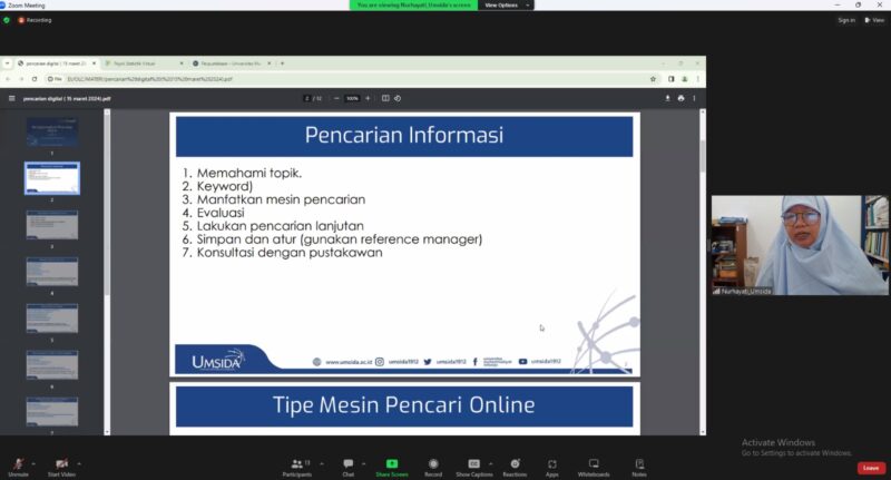 Dalam upaya meningkatkan keterampilan mahasiswa dalam mencari informasi secara efektif di era digital, Universitas Muhammadiyah Sidoarjo (UMSIDA) menggelar kelas literasi perpustakaan daring, dengan tema “Mengoptimalkan Pencarian Online”. Dalam kelas literasi tersebut, para peserta diajak untuk menyelami teknik-teknik canggih dalam menjelajahi lautan informasi di era digital. Narasumber utama dalam kelas literasi kali ini adalah Nurhayati, pustakawan...Read More
